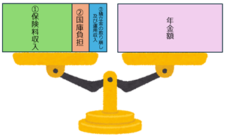この①②③の合計額が、右側の年金給付と同額になるように設定されているのです。